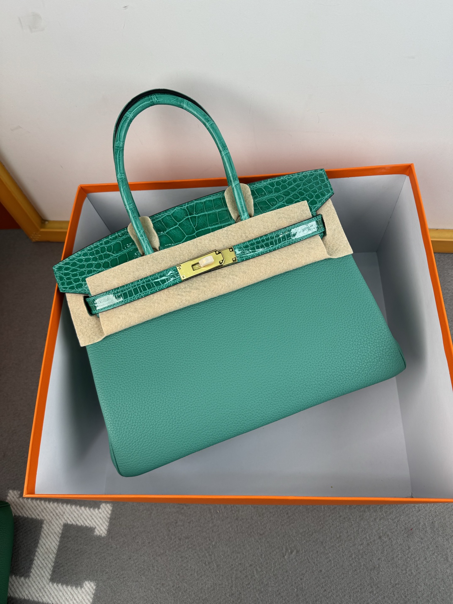 Birkin-30cm-touch-Togo-and-Shiny-Crocodile-Jade-Green-GHW