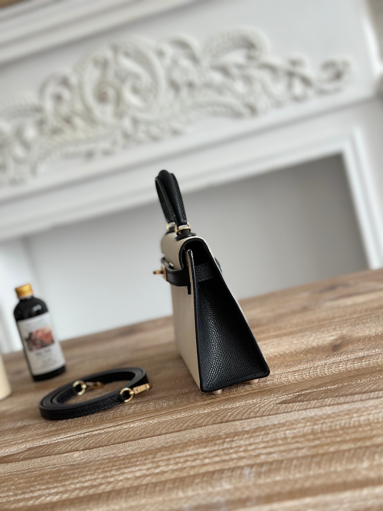 Kelly-Mini-19cm-Epsom-Milkshake&Black