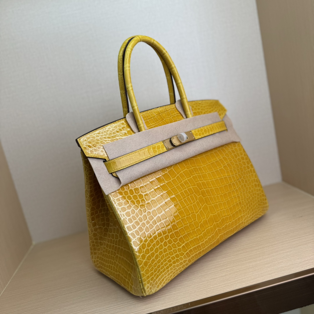 Birkin-30cm-American-Shiny-Crocodile-Amber-Yellow