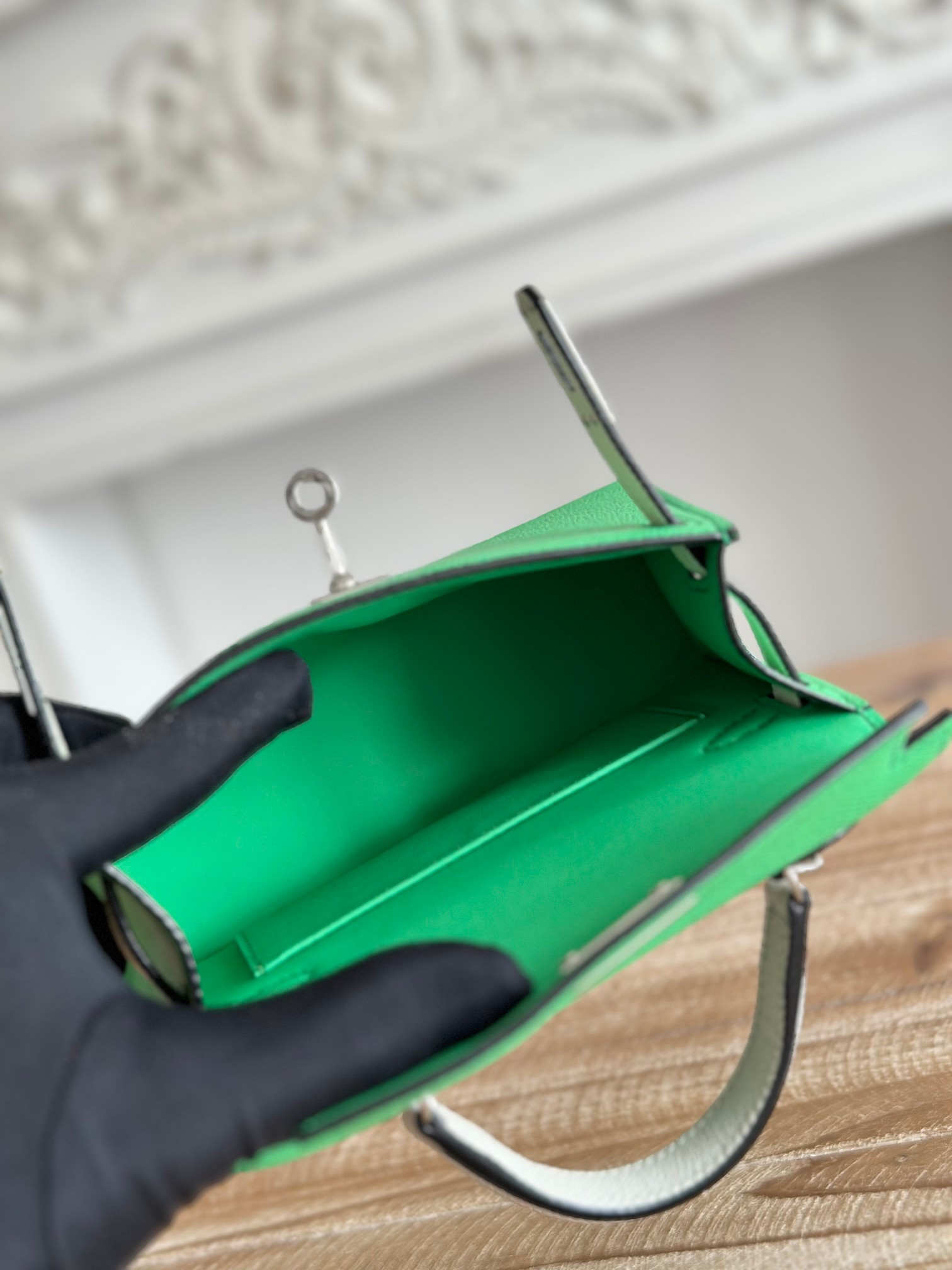 Kelly-Mini-19cm-Epsom-Green&MilkWhite