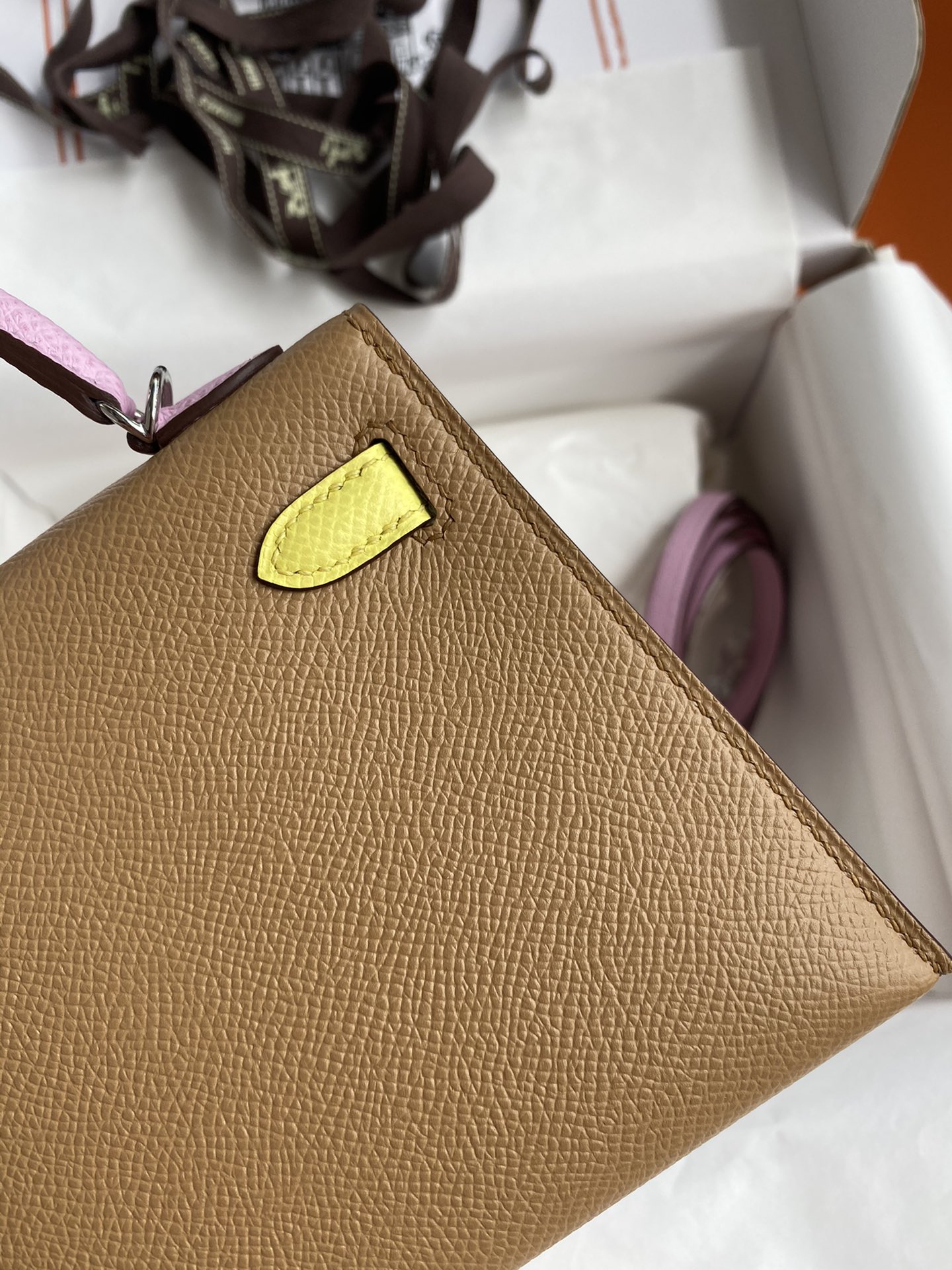 Kelly-Mini-19cm-Epsom-TeaMilk&Yellow&Purple
