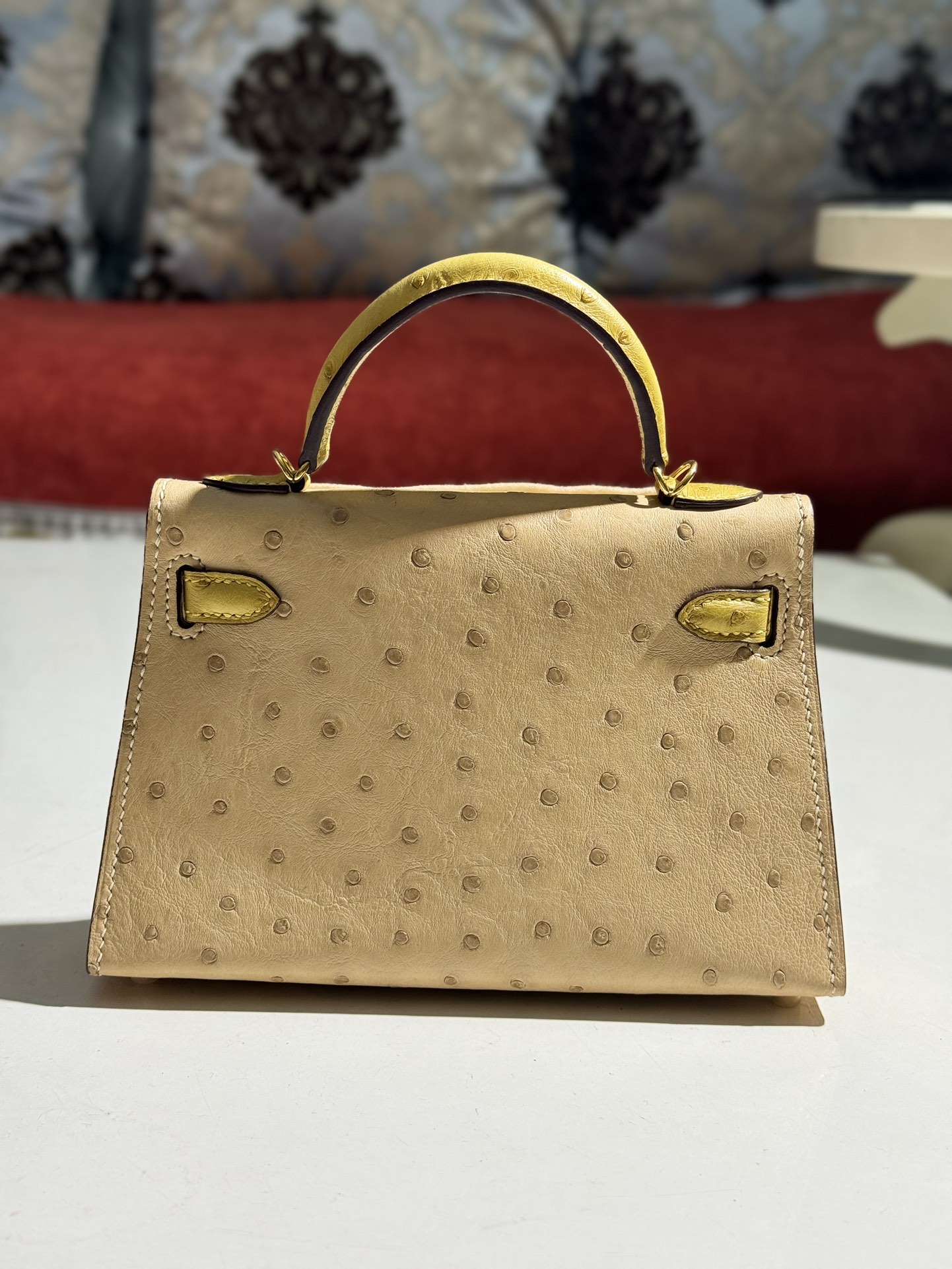 Mini-Kelly-Ostrich-Brown&Yellow