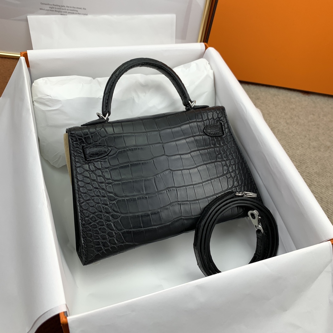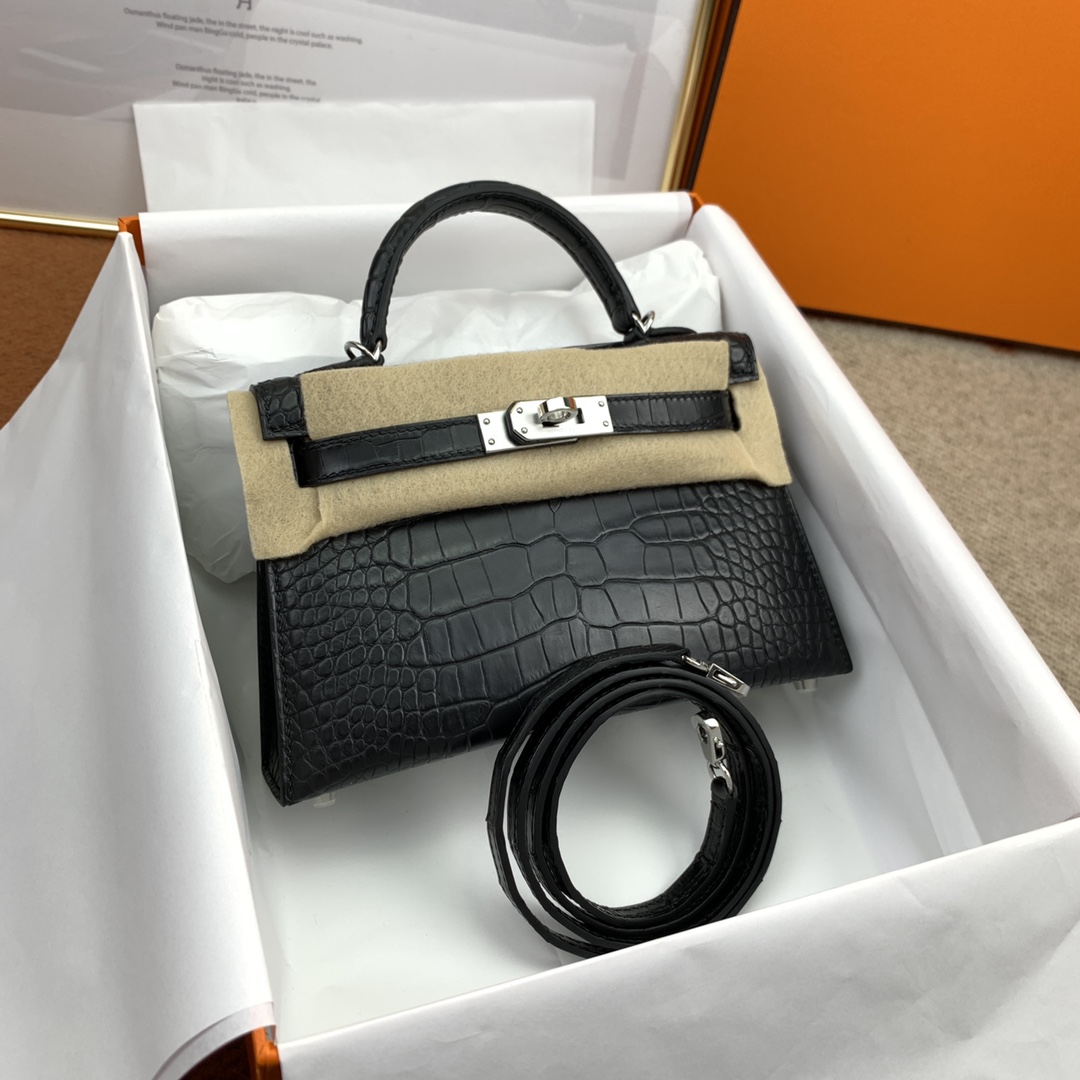 Hermes-Mini-Kelly-Crocodile-Texture-Black-SHW