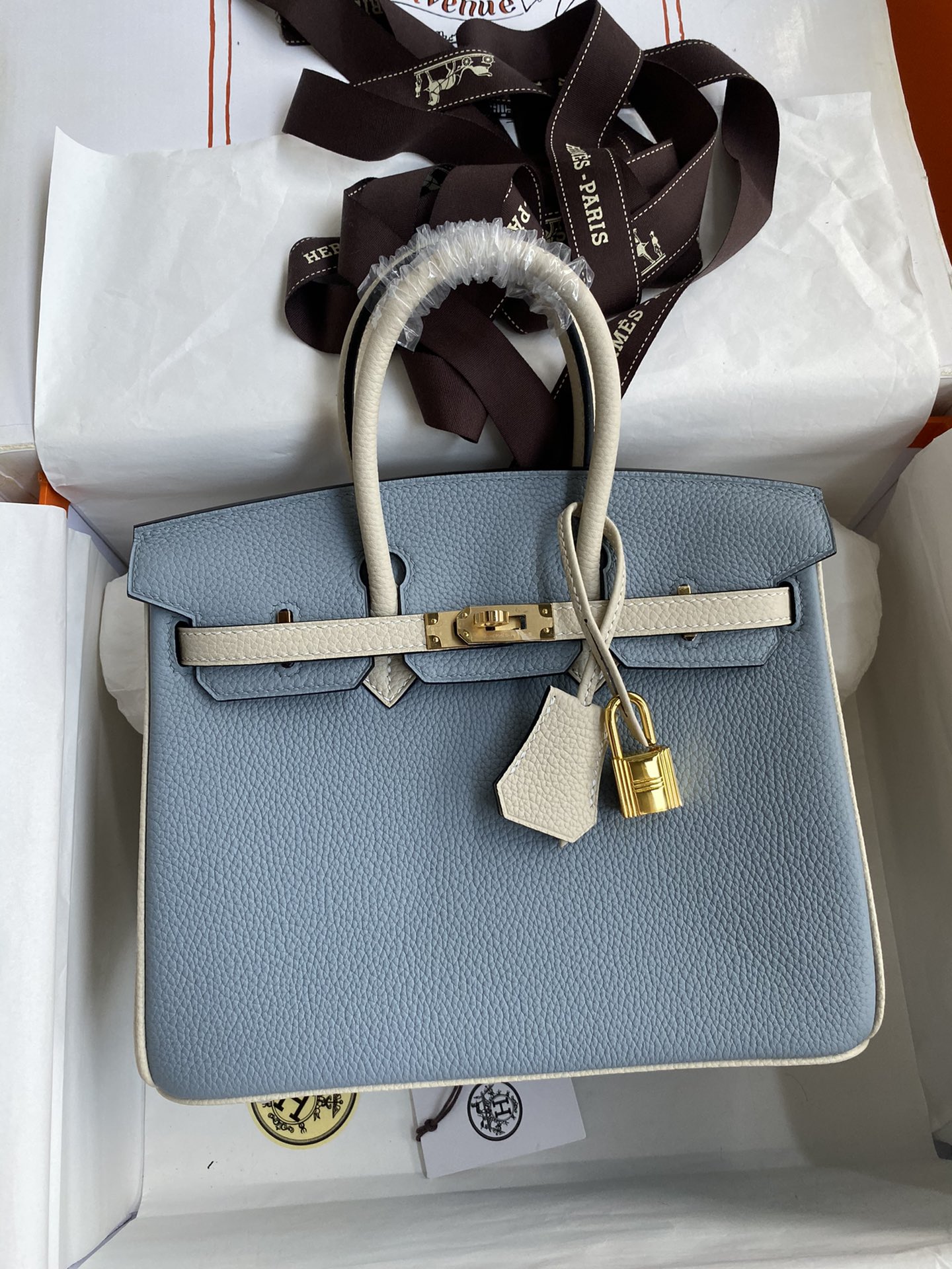 Birkin-25cm-Togo-Linen-Blue-and-Milkshake-White-GHW