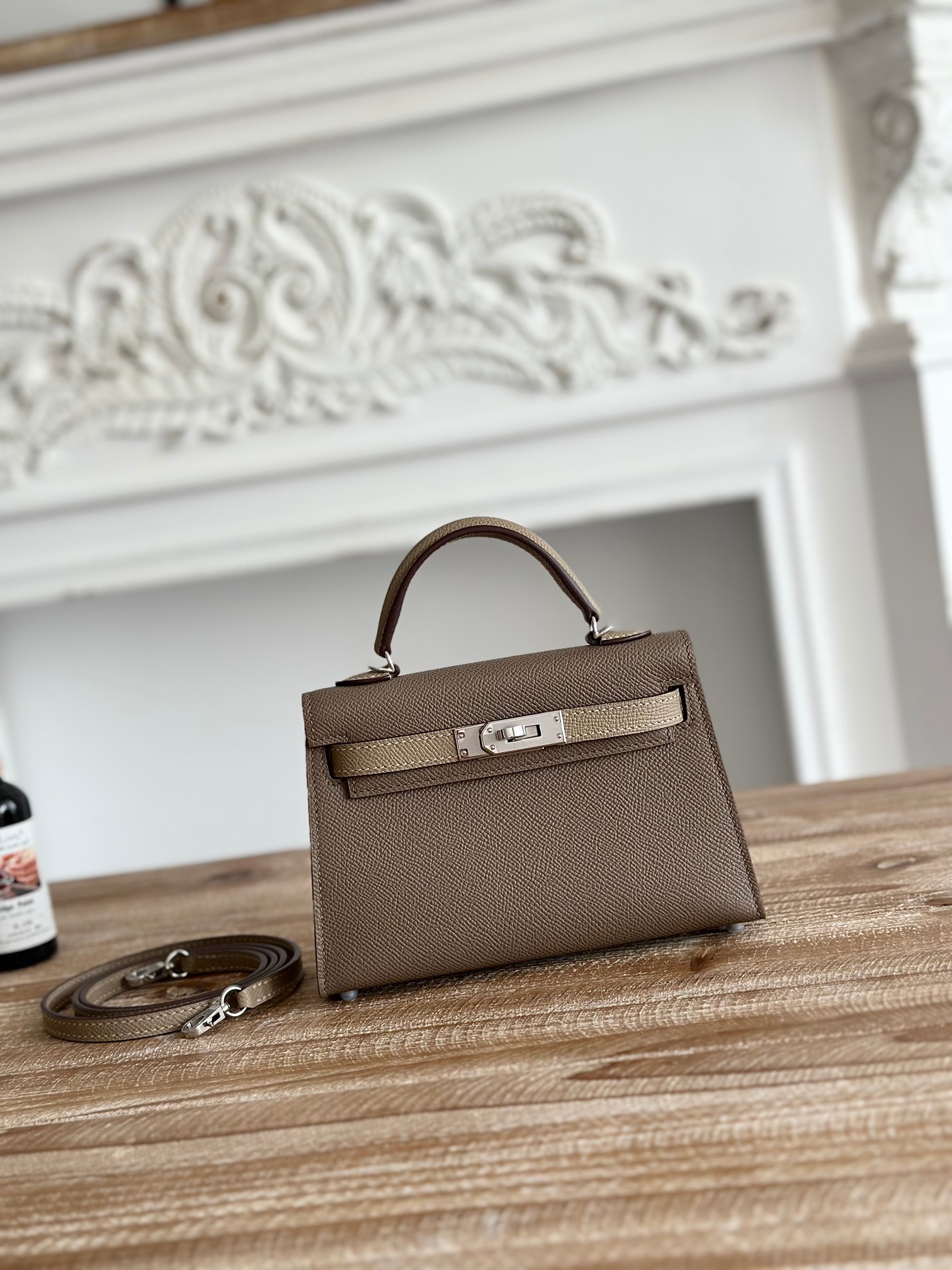 Kelly-Mini-19cm-Epsom-Etoupe&Pigeon