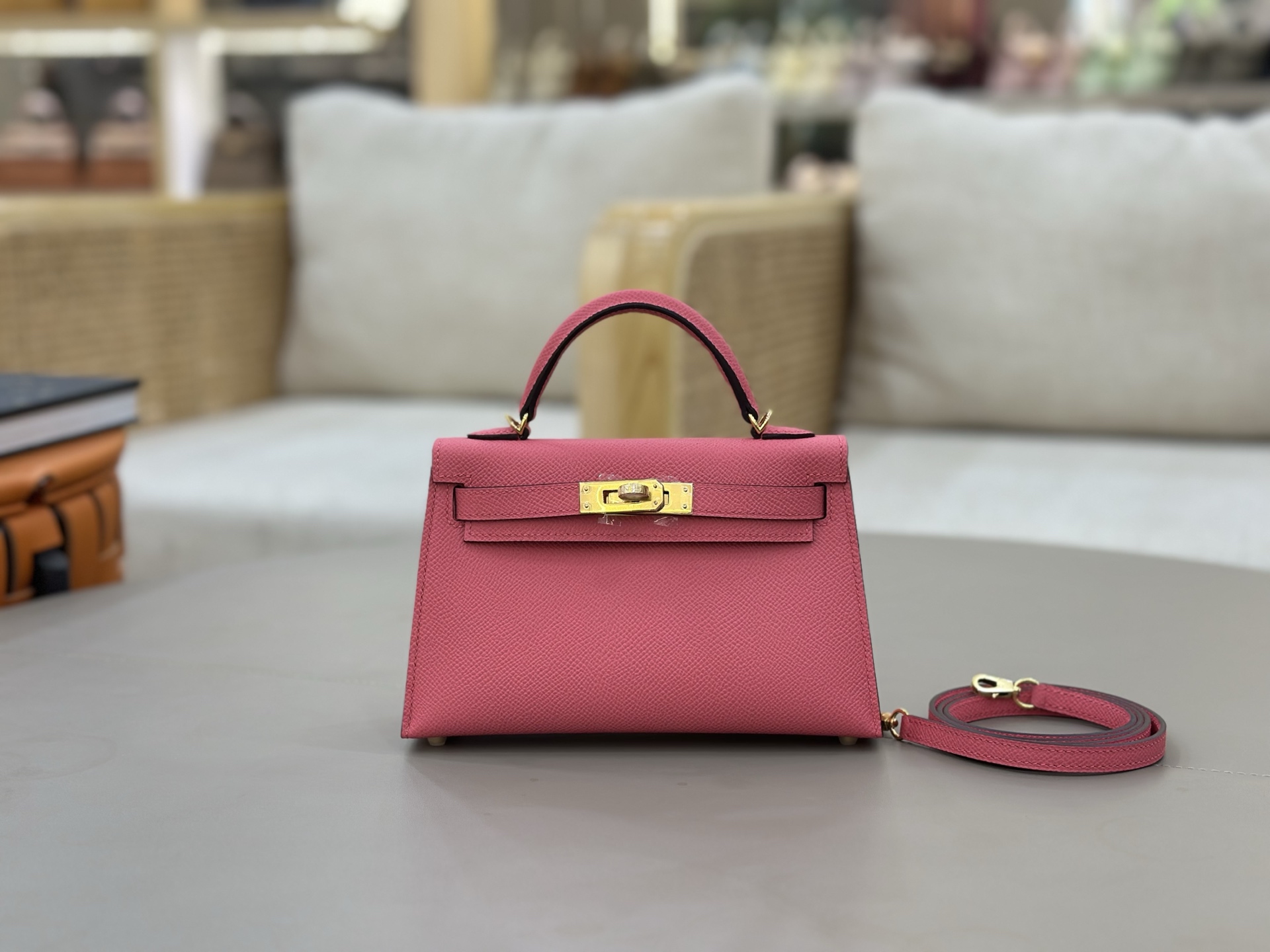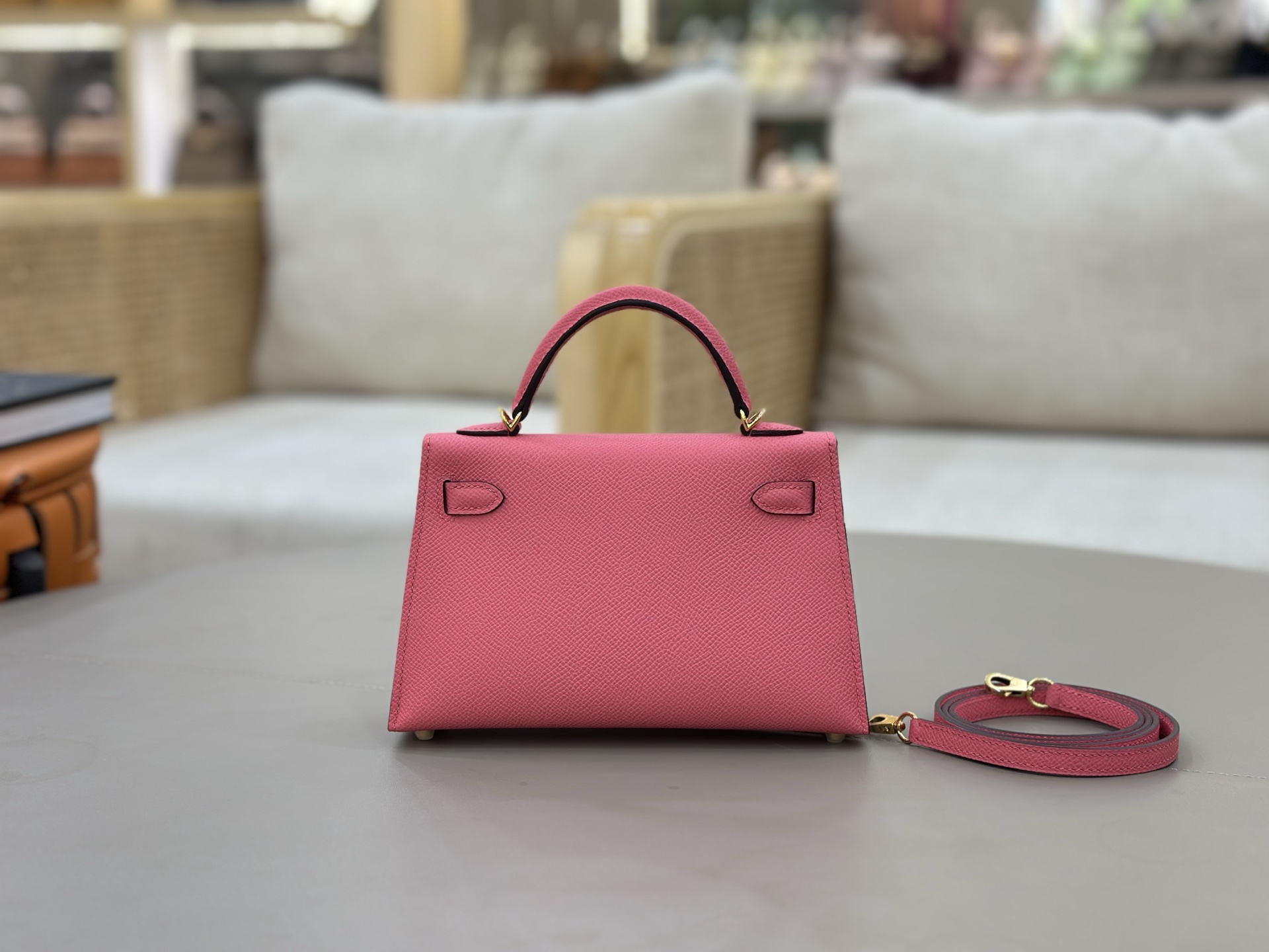 Mini-Kelly-Ostrich-Orange&Grey