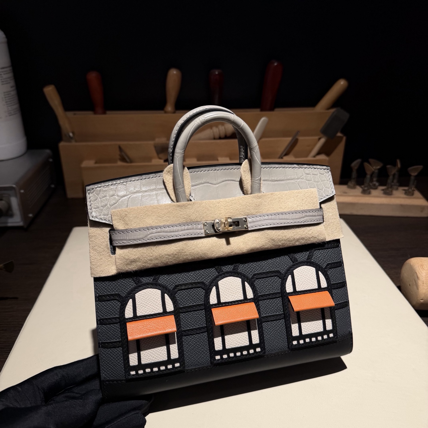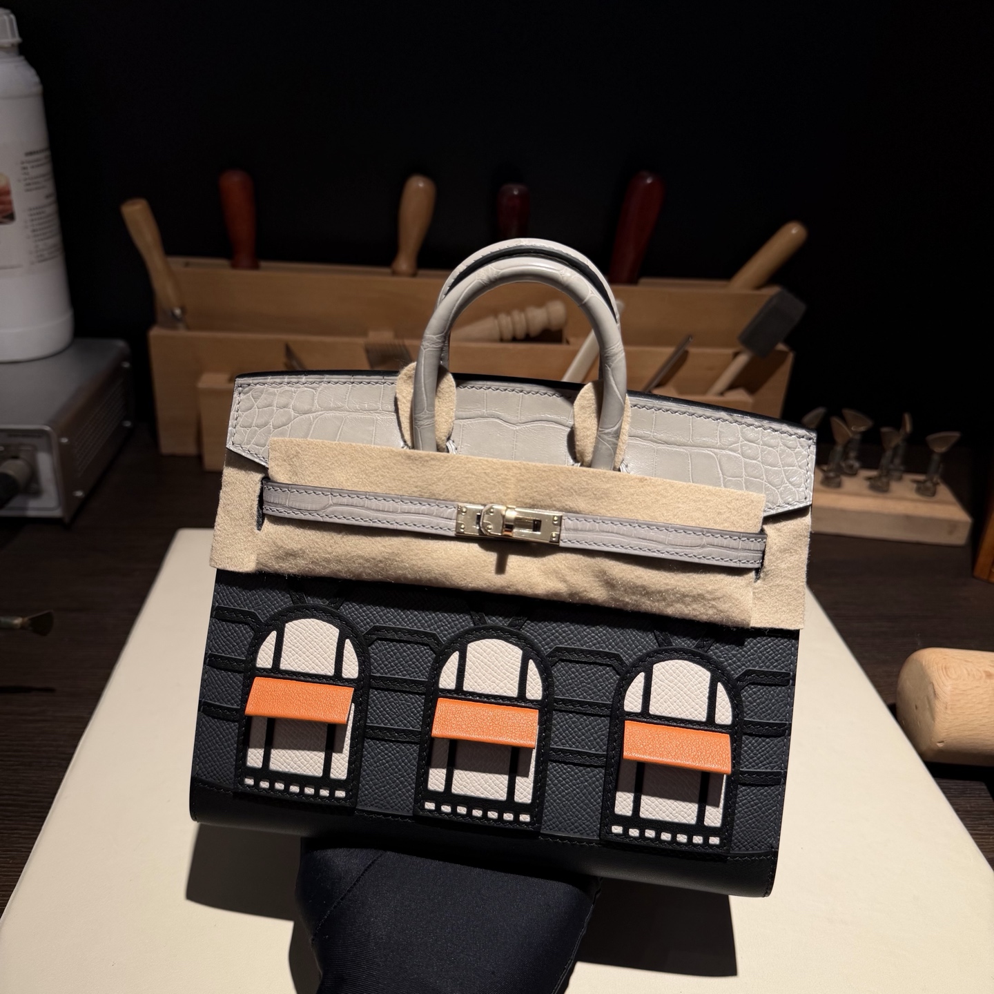 Birkin-Faubourg-20cm-Crocodile-White-and-Black