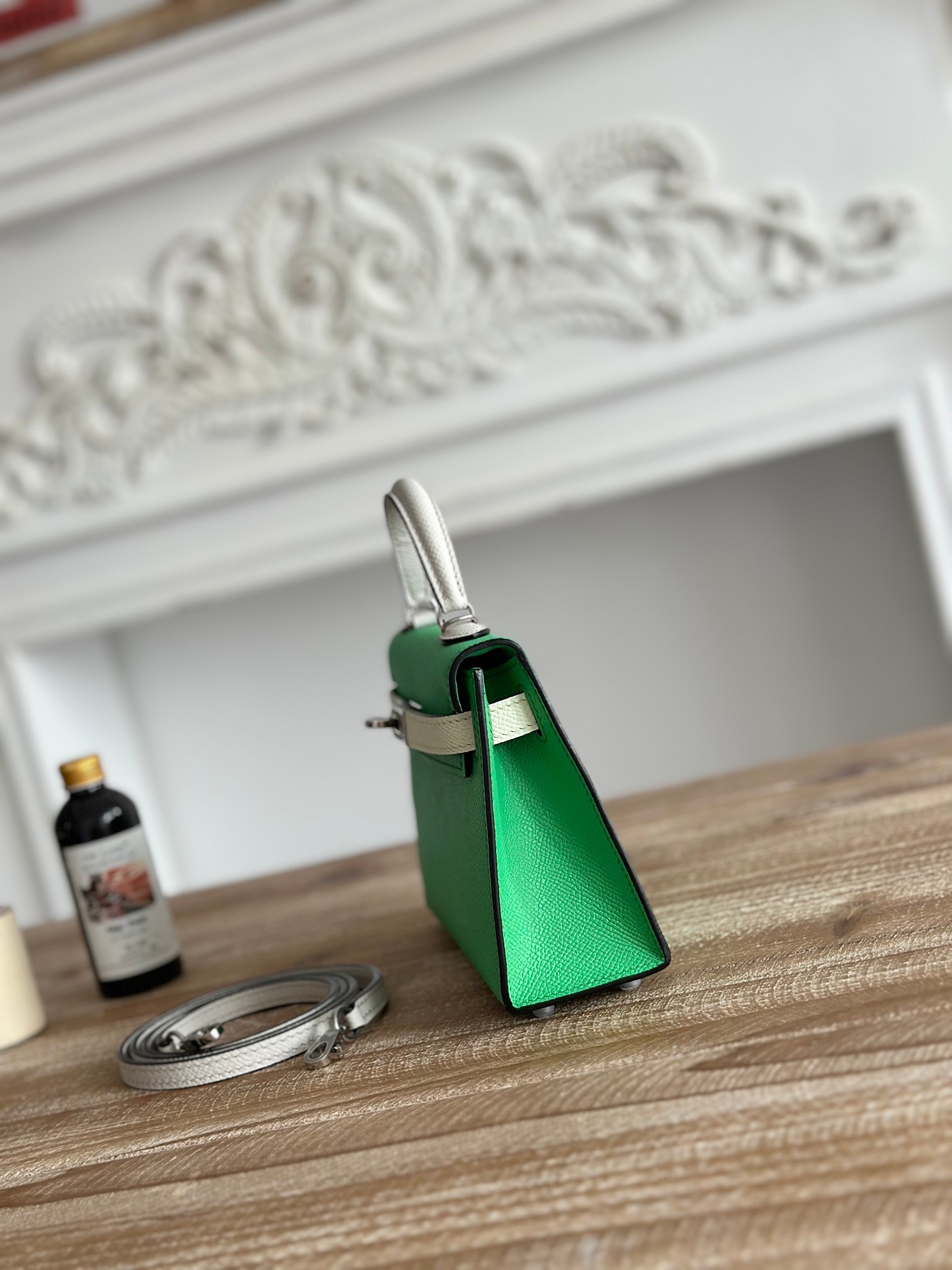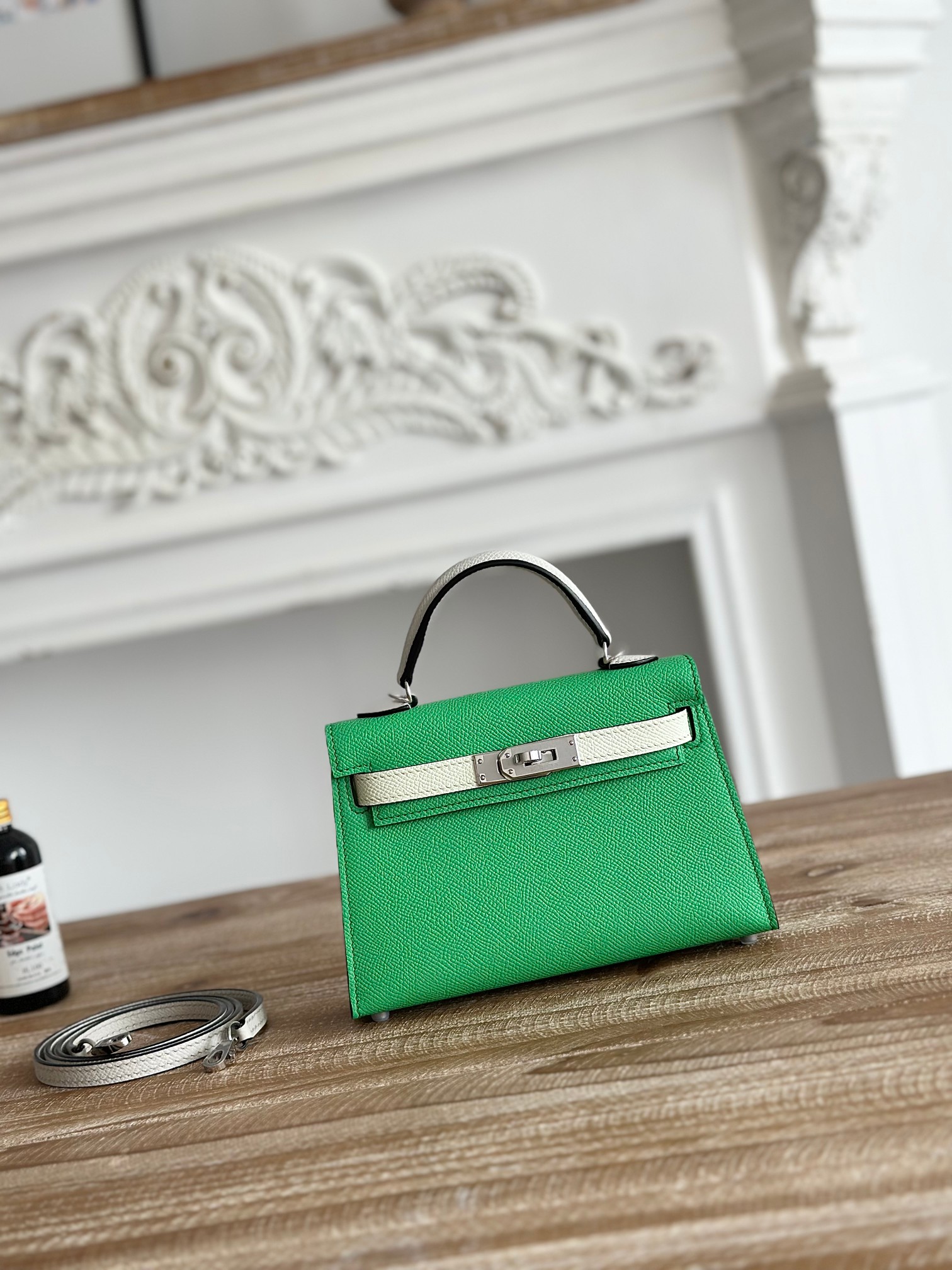 Kelly-Mini-19cm-Epsom-Green&MilkWhite