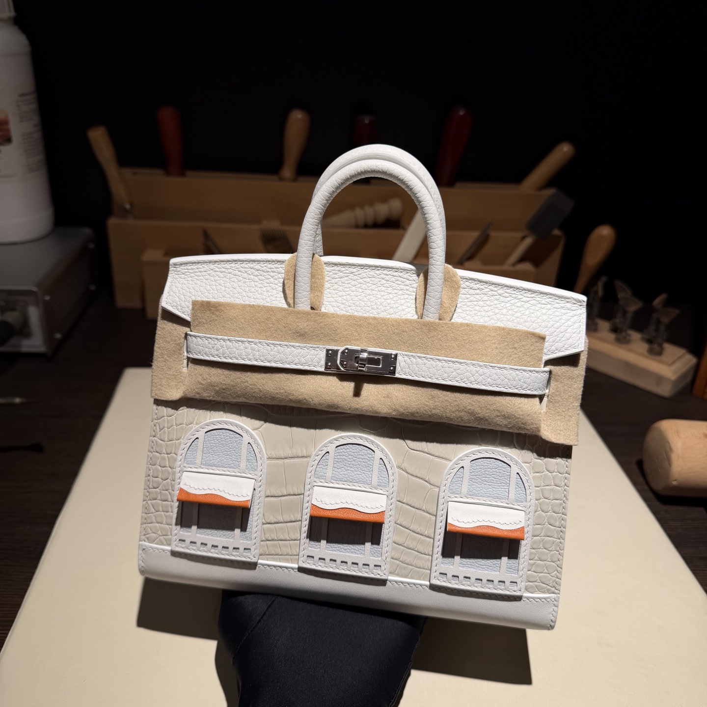 Birkin-Faubourg-20cm-Crocodile-White-and-MilkShake