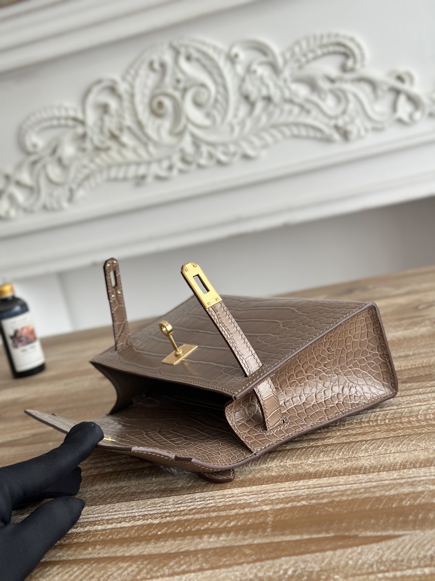 Hermes-Mini-Kelly-Retourne-Crocodile-Texture-Etoupe