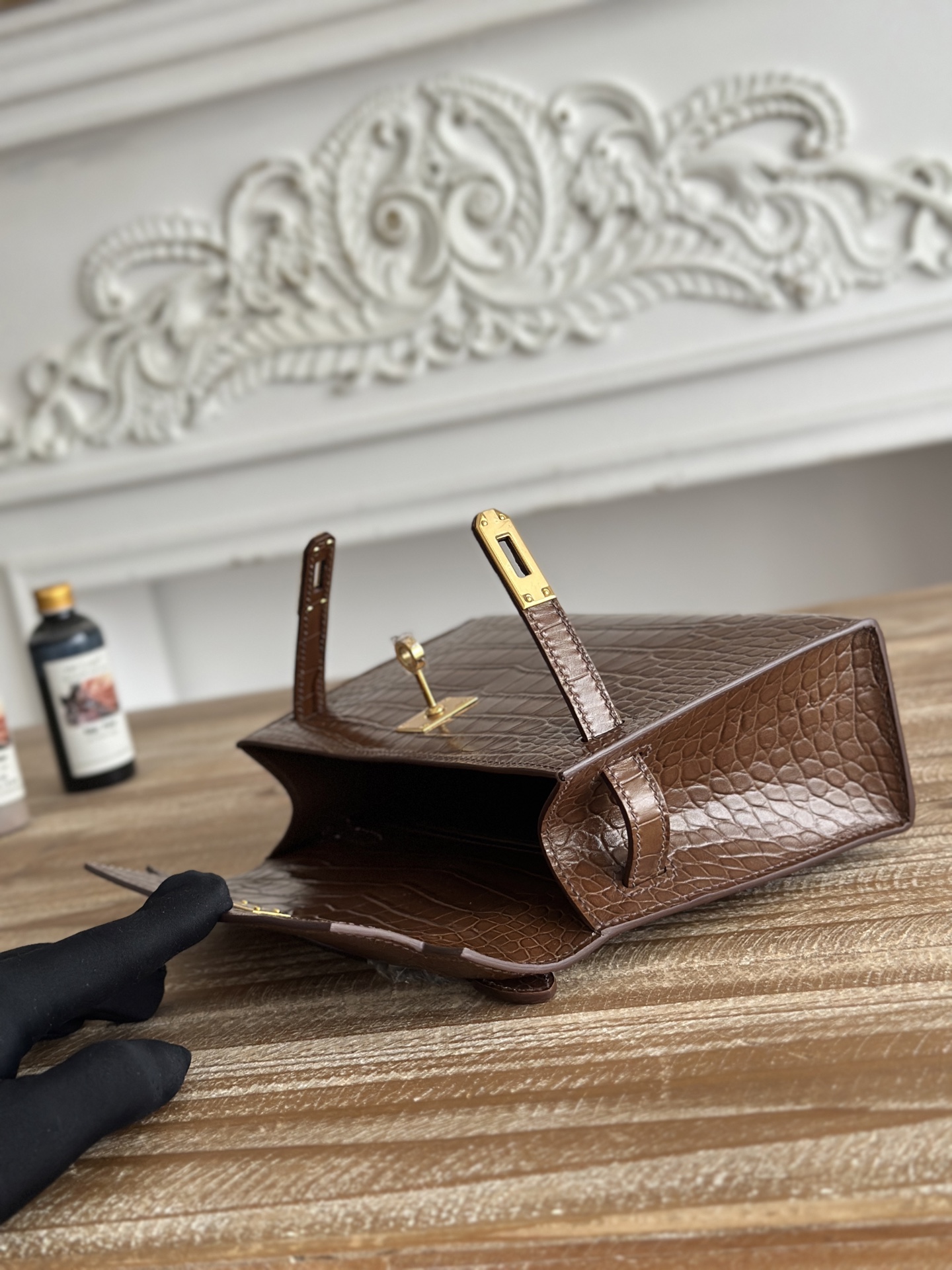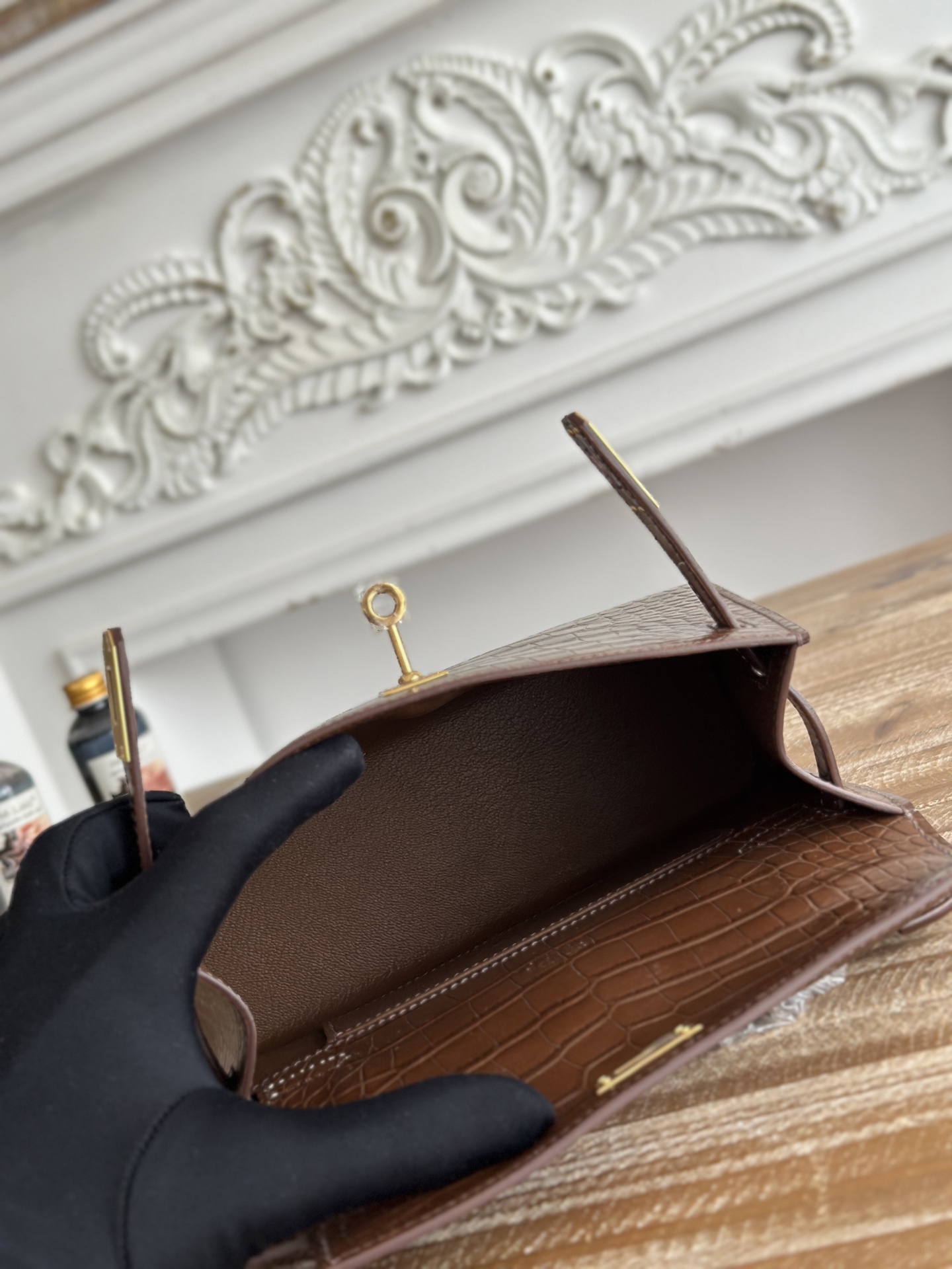 Hermes-Mini-Kelly-Retourne-Crocodile-Texture-GoldenBrown
