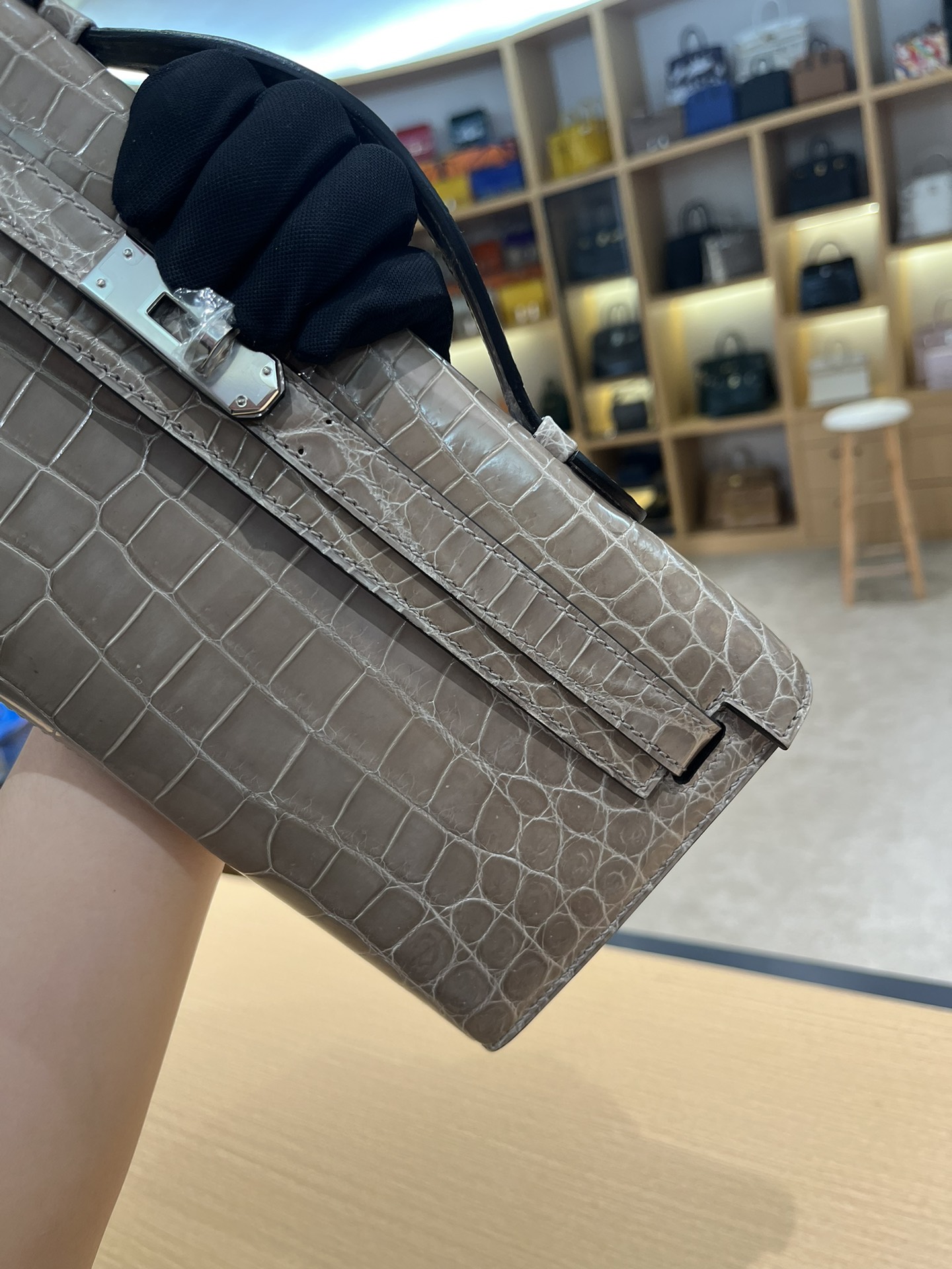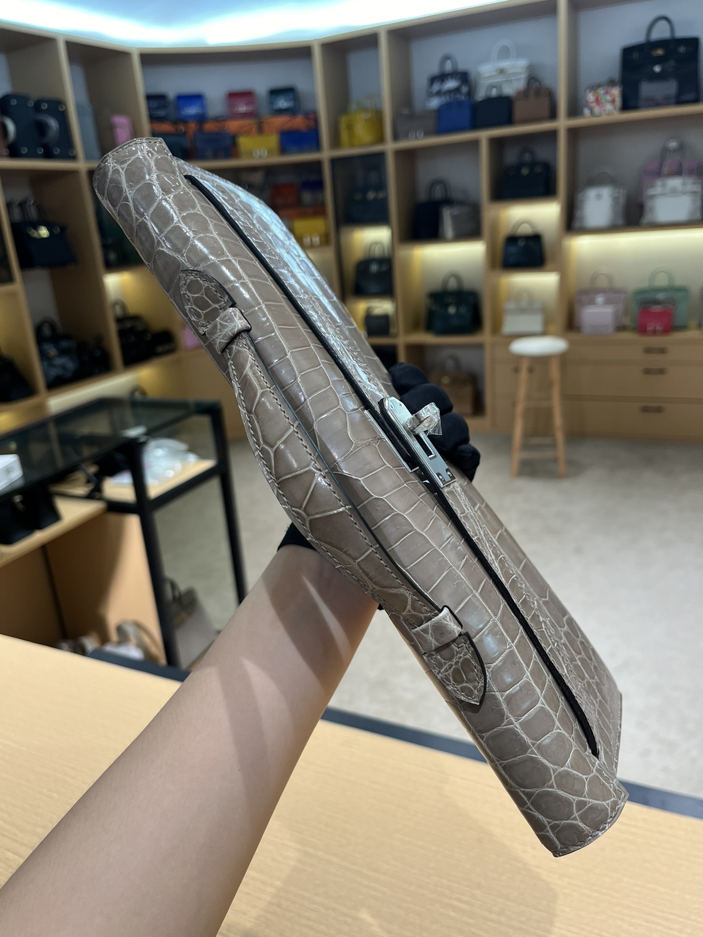 Kelly-cut-31cm-Crocodile-Etoupe