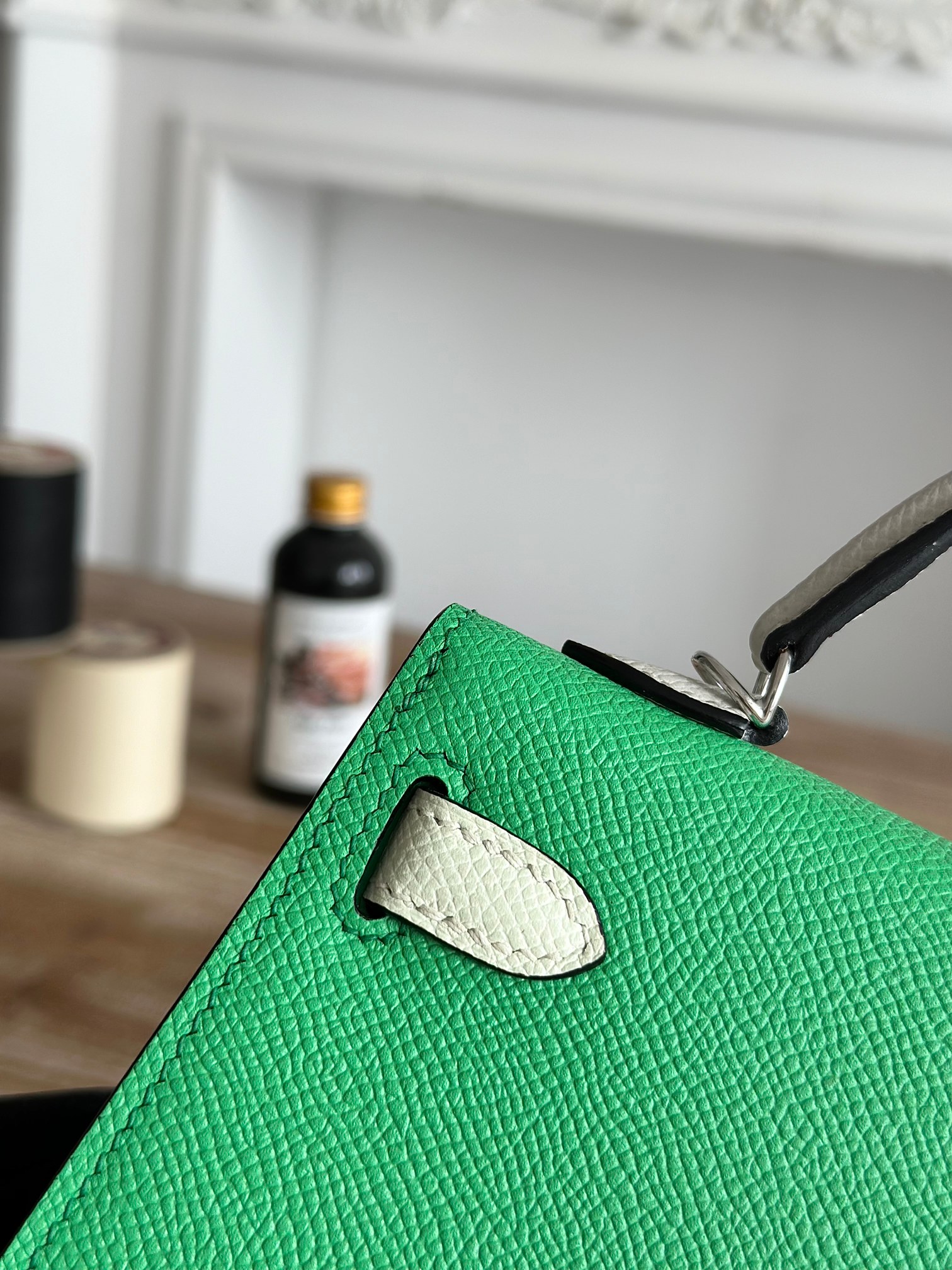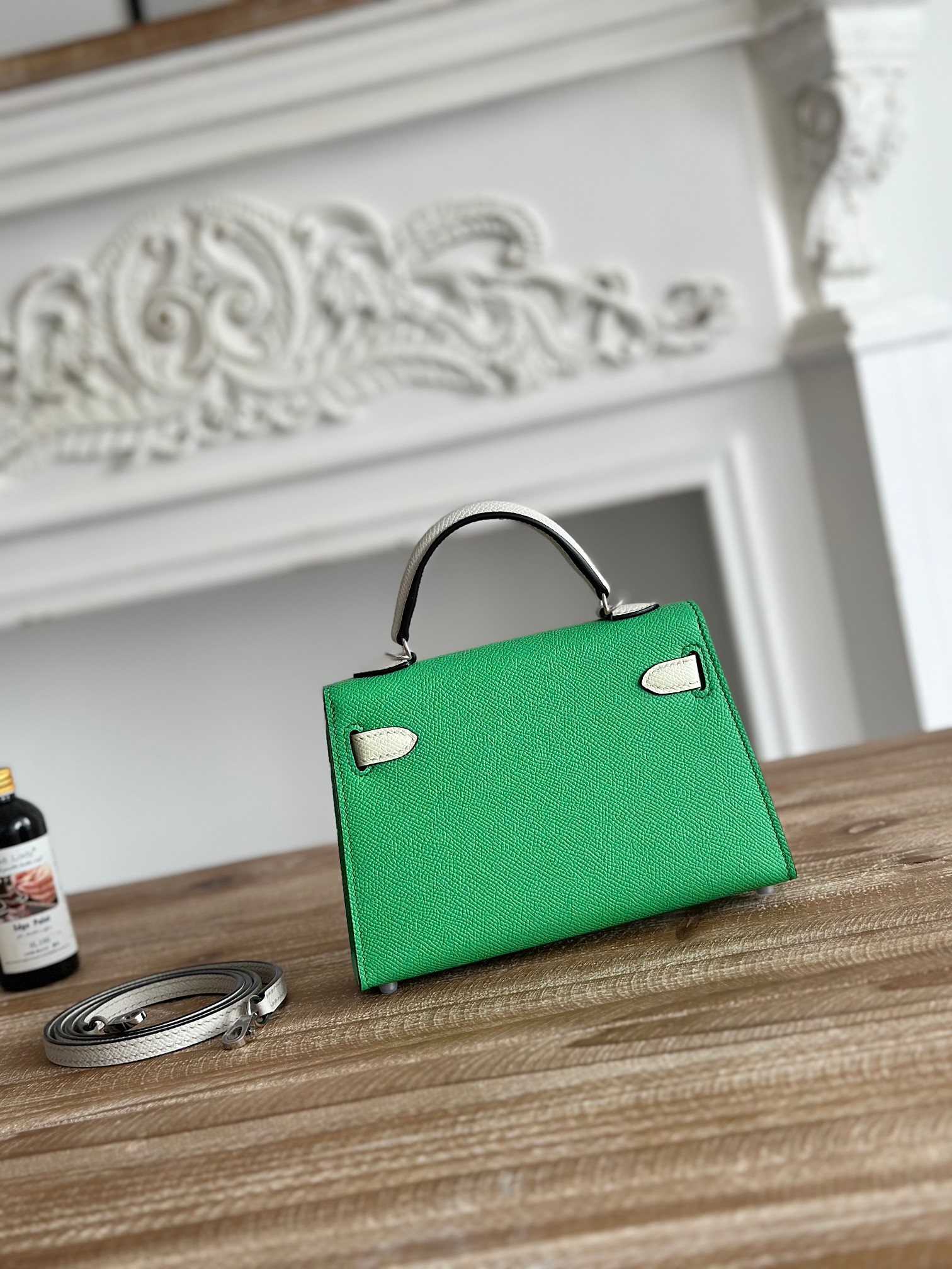 Kelly-Mini-19cm-Epsom-Green&MilkWhite
