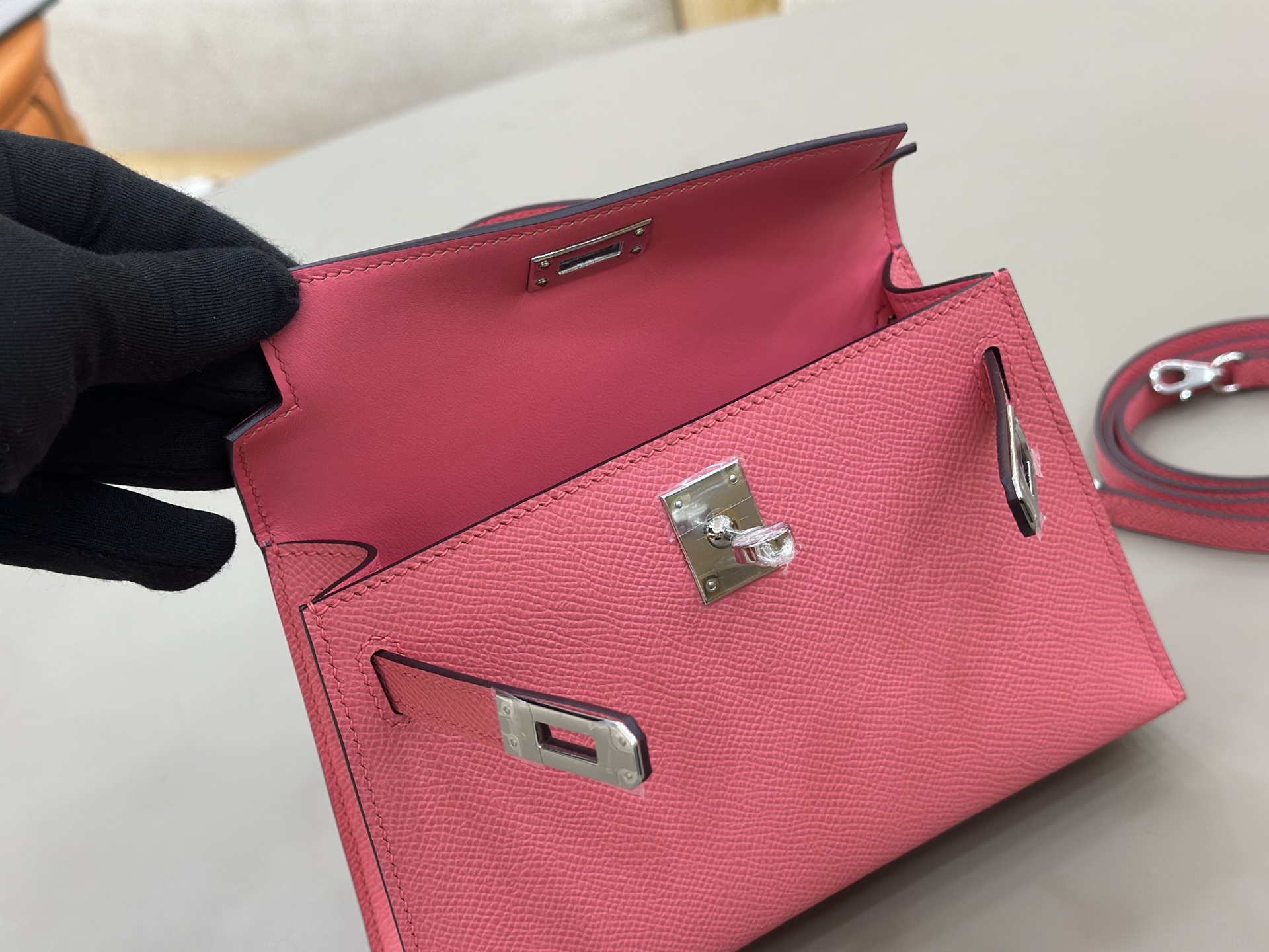 Kelly-Mini-19cm-Epsom-Milkshake&Purple