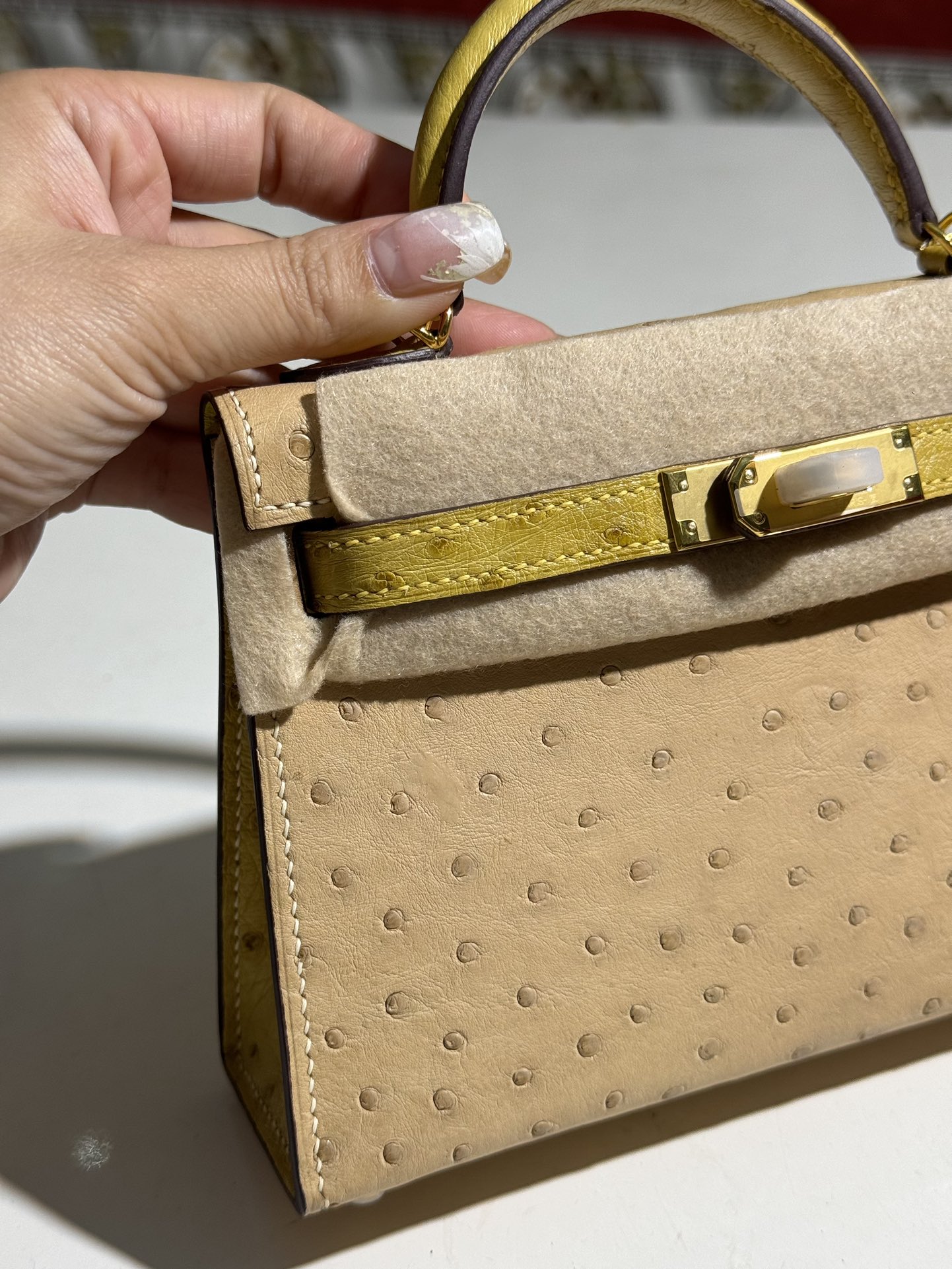 Mini-Kelly-Ostrich-Brown&Yellow