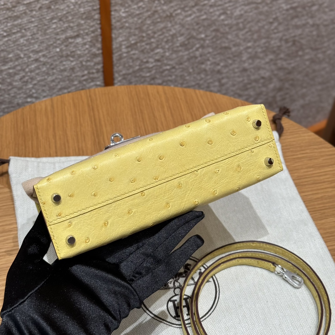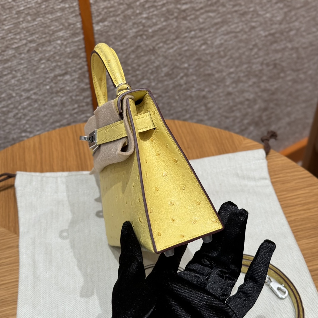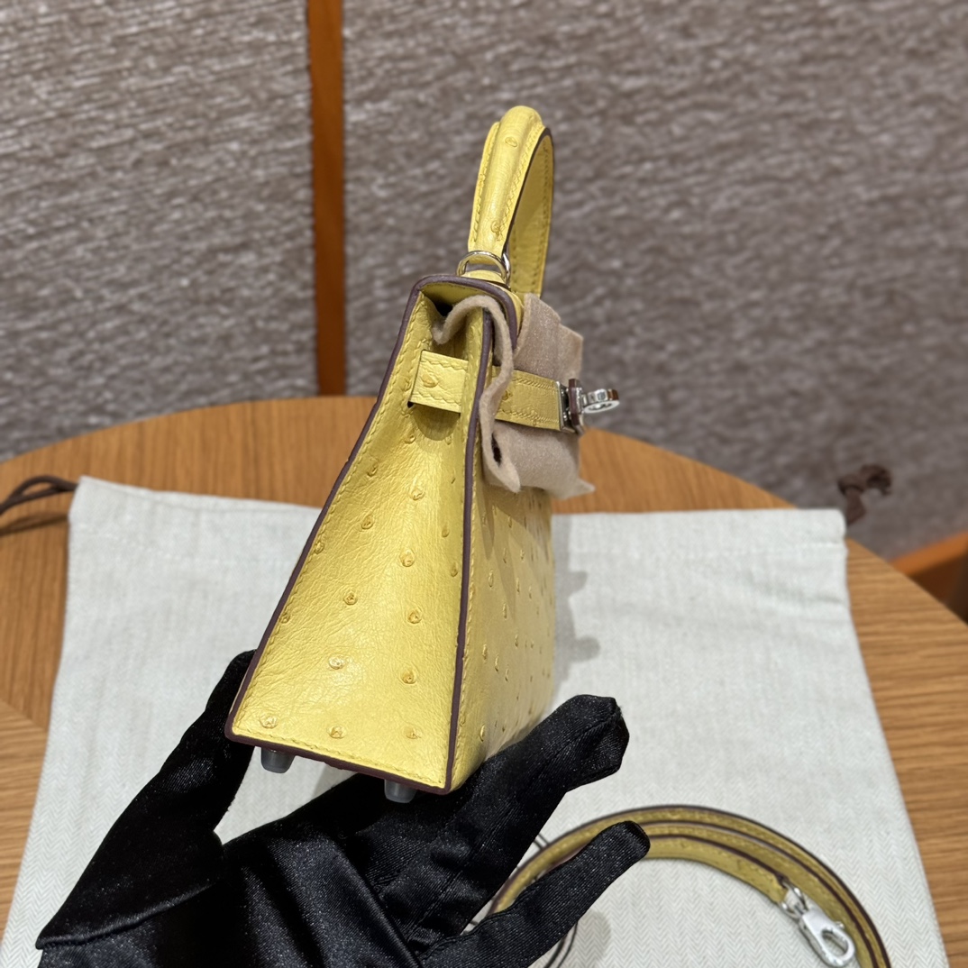 Mini-Kelly-Ostrich-Yellow